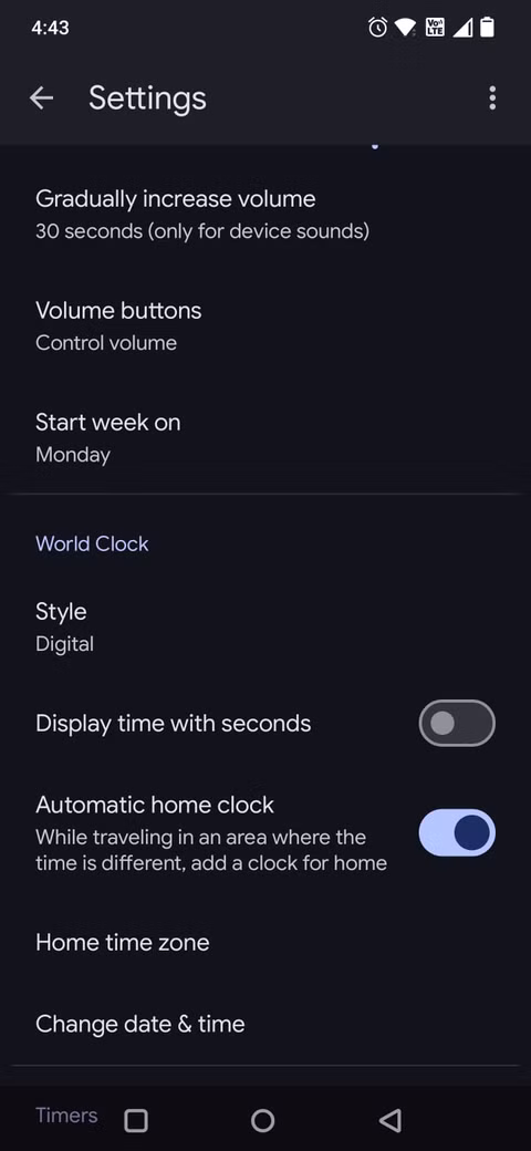 Un’impostazione spesso sottovalutata è l’aumento graduale del volume. Apri Orologio, entra nel menu con i tre puntini, vai in Impostazioni e cerca “Aumenta gradualmente il volume” o voce equivalente. Puoi scegliere per quanti secondi o minuti la sveglia deve salire dal volume basso a quello pieno.